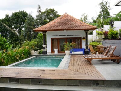 Villa Gandhi Cangkilung is a modern retreat nestled in the serene highlands of Sulangai, offering breathtaking views of the hills..